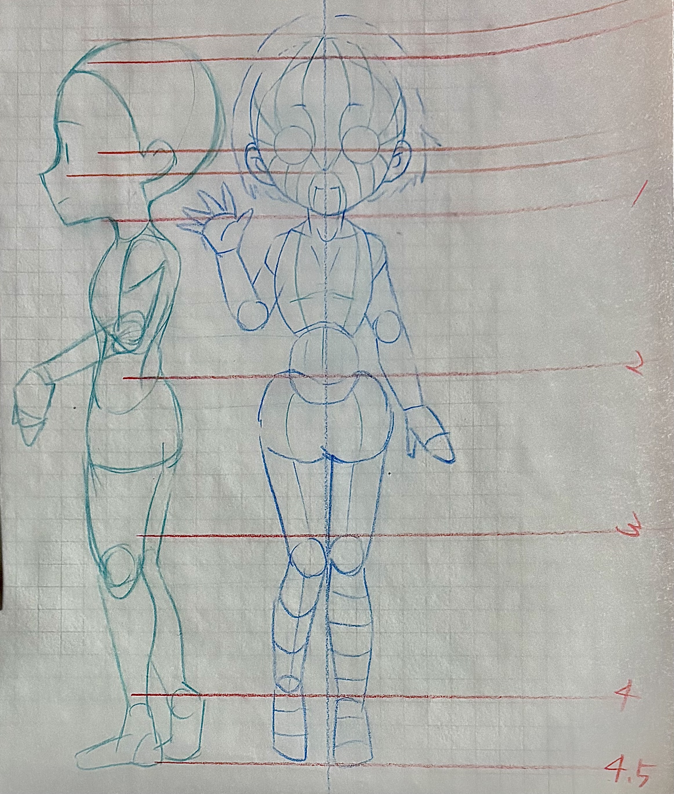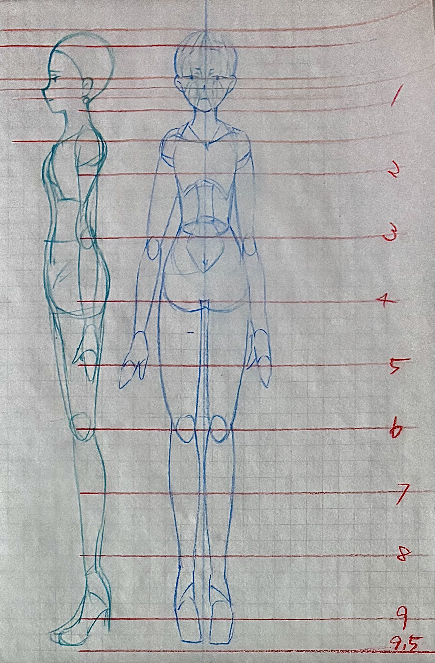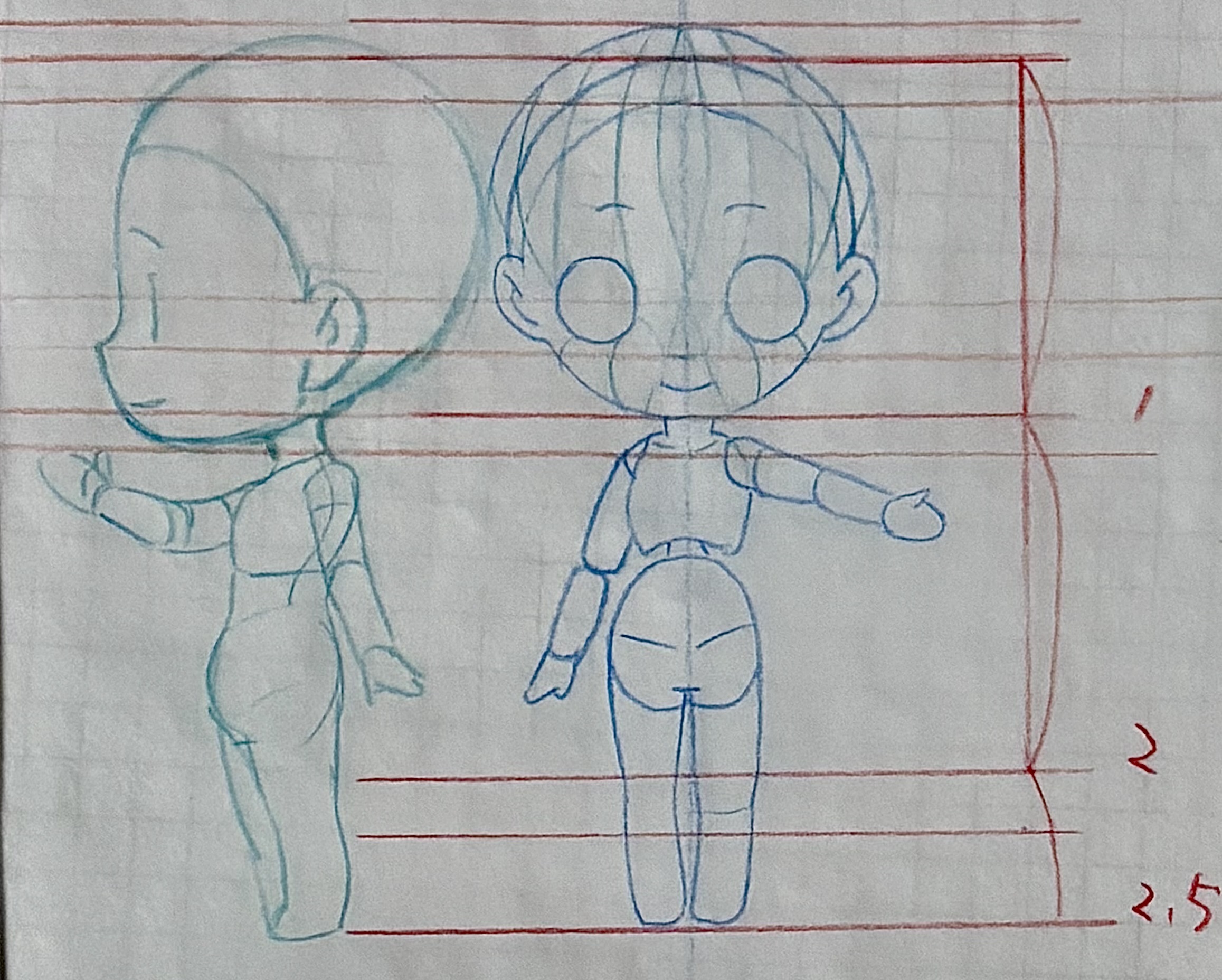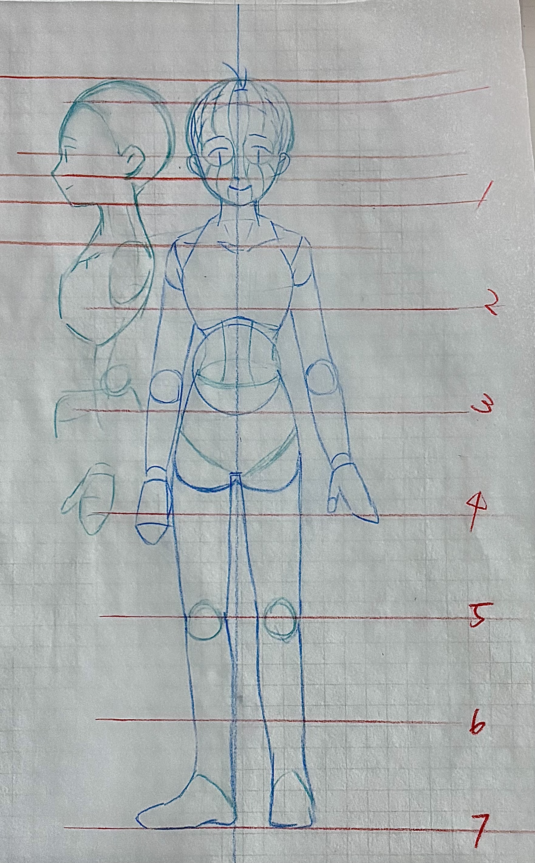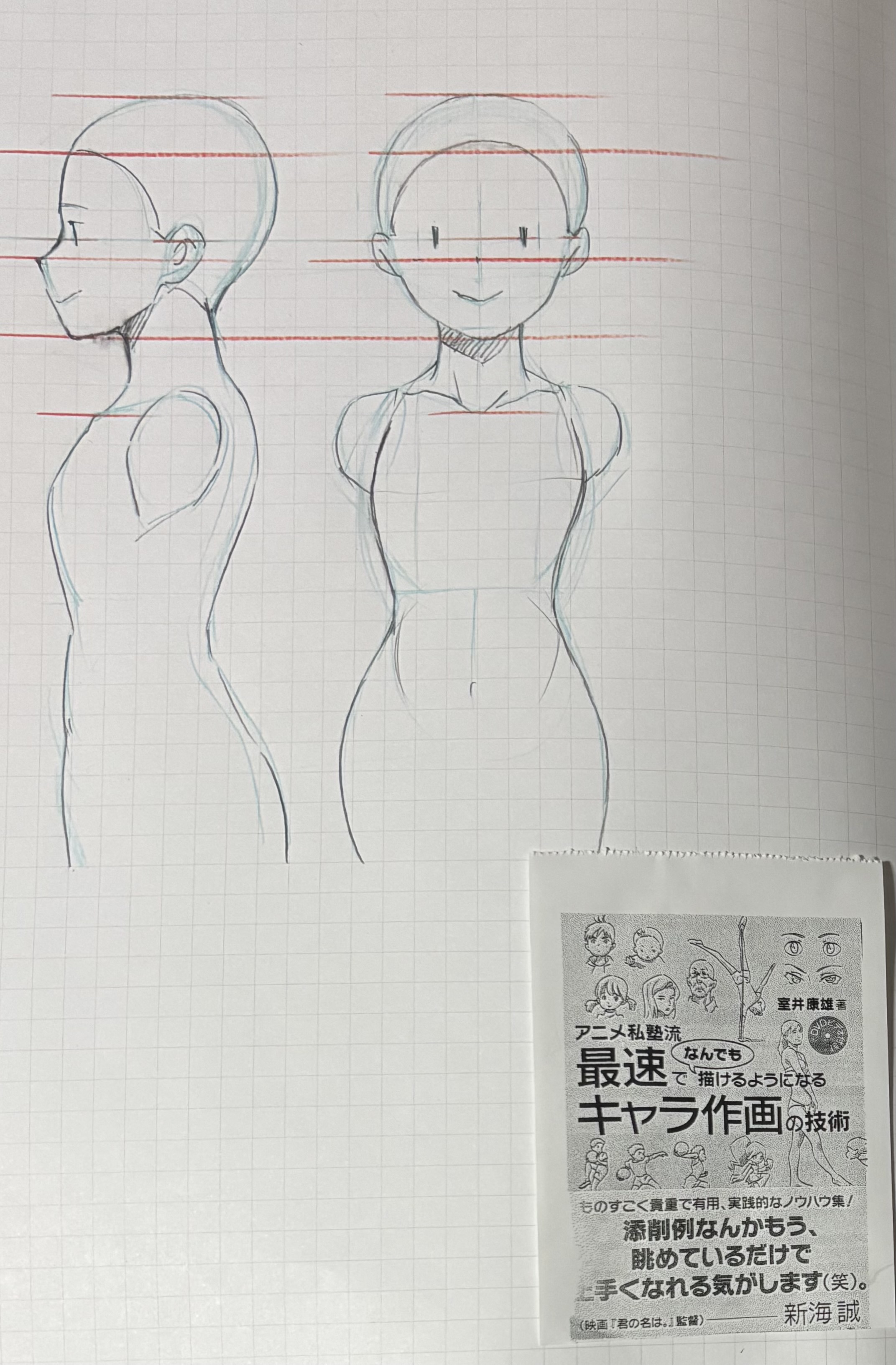 アニメ私塾さんの本を参考に、前作った自分絵ガイドに横顔を足しました。